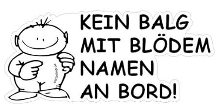 Das würde mich auch interessieren! Wenn man oftmals so hinter einem typischen Familienkombi herfährt, und da stehen so komische Namen drauf ".... fährt mit" oder ".... an Bord", da kann ich nur den Kopf schütteln!Teilweise fragt man sich wirklich, in welcher kuriosen Situation die Eltern auf derartige Namen kamen??!