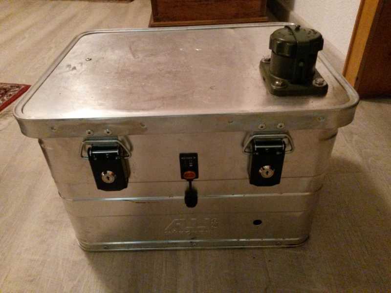 Als Alternative habe ich eine Alubox genommen und darin eine Batterie, Sicherung und eine Natosteckdose verbaut.
