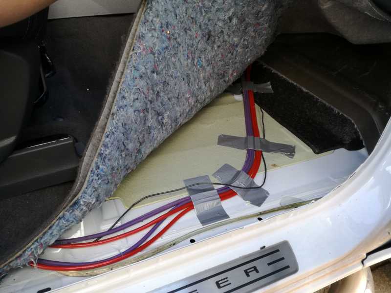 Da die Endstufe unter dem Beifahrersitz "arbeitet", reichen 2,5-3 Meter Cinch-Kabel, diese habe ich unter dem Teppich verlegt, der ist dick genug, und schützt die Kabel ausreichend, somit sind sie auch von anderen Störquellen weit geung entfernt.