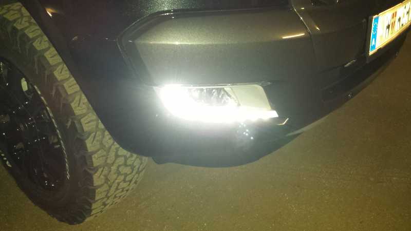 Hab die Höhe noch nicht eingestellt, aber Licht ist gut hell und leuchtete auch mehr zur Seite als der originale Nebelscheinwerfer. Kommt aber trotzdem nicht an ein Kurvenlicht oder Abbiegelicht ran.