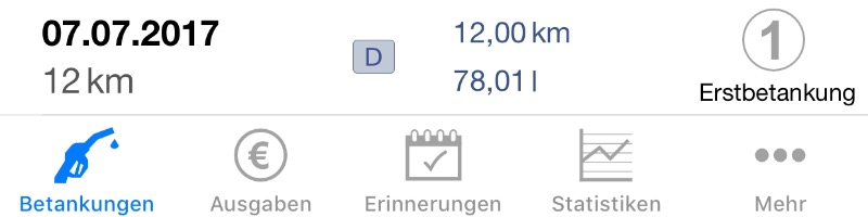 Das hier war meine Erstbetankung nach Abholung beim Händler: