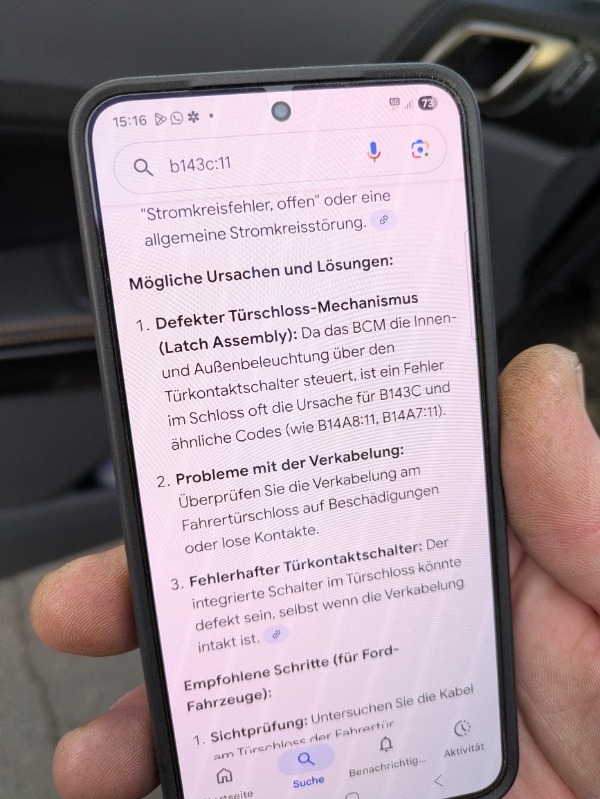 Aber der Fehler defekter Sensor im Türschloss ist wieder.