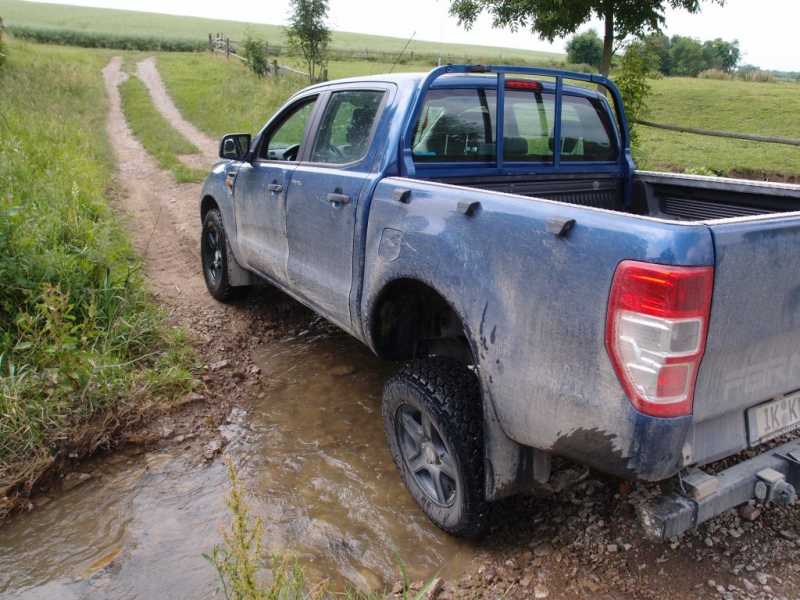 Neulich durfte ich mal wieder die meines Erachtens gute Verschränkungsfähigkeit des Rangers in einer durch das Hochwasser ausgespülten Wasserdurchfahrt erleben. Die Vorderachse trägt nur bedingt dazu bei, aber die Hinterachse kann ganz schön gewaltig verschränken. Ich denke, dass da sogar mancher 4x4 blaß wird.