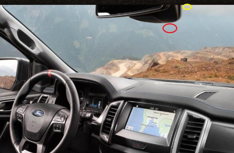 Ich will schnellstmöglich meine Dashcam ins Auto kriegen, geplant ist es entweder vor dem Spiegelfuss (rot) oder rechts daneben (gelb). Wenn ich in der BA korrekt gelesen hab, dann dürfte sich ja da kein Sensor oder ähnliches im Spiegelfuss befinden.