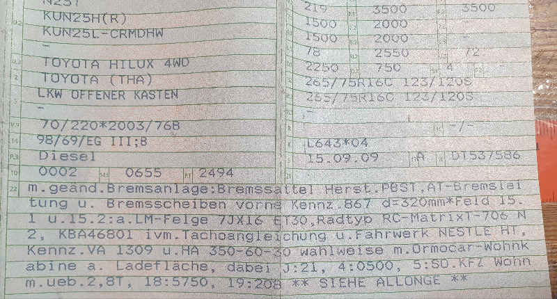 Es handelt sich um einen 3,5t Hilux, um das zu erreichen, hat man ihm bei der Fa. Nestlé ein anderes Fahrwerk verpasst, nämlich HT.