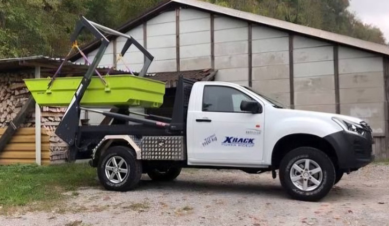 Pritsche runter, Hakenlift drauf. Allerdings werden aus den 4k für einen Hydraulikkran schnell 20k für den Hakenlift mit Wanne.