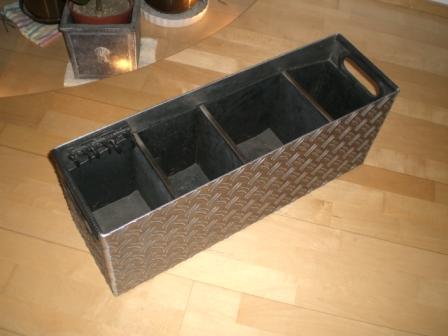 Die kleine hat die Maße: 200 breit / 250 hoch / 650 lang, ist aufgeteilt in 4 Fächer, die komplett mit 3mm Gummi ausgekleidet sind. (Für Wagenheber, Schäkel und sonstigen Kleinkram, der nicht klappern soll). Die Trennwände sind durchgeschweißt und oben mit einem Edelstahl U-Profil umlegt, so dass sich der Gummi nicht lösen kann.