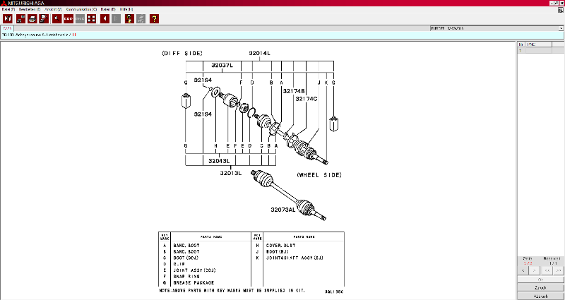 ich habe mal im ASA (Mitsubishi Teileprogramm) Screenshots von jeweils der Manschette des Stellglied/Aktuator des Differentials und der Achsmanschetten gemacht, um das ganze nochmal zu verdeutlichen.