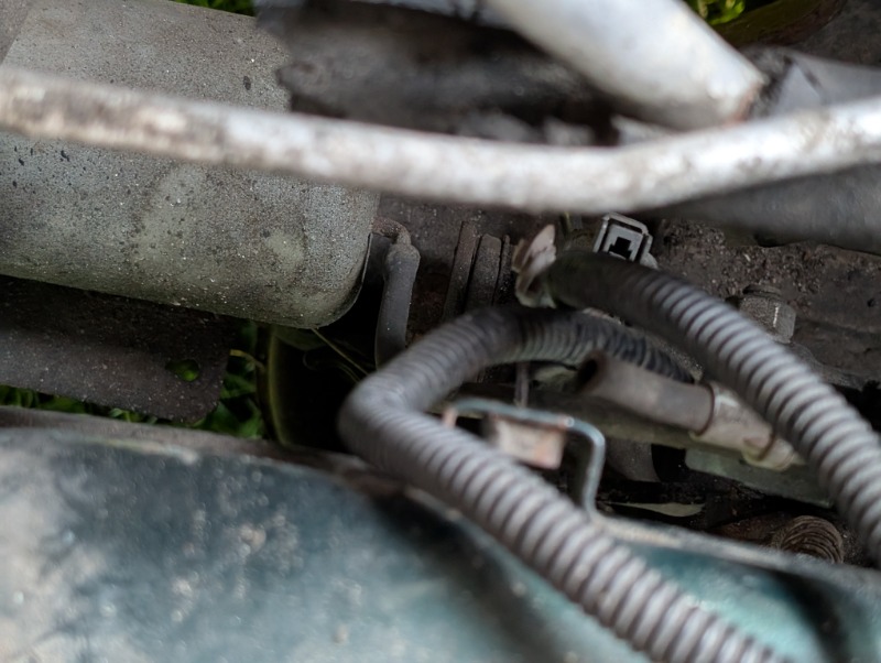 Zwei gehen von zwei Ventilen? senkrecht runter und sind abgeschnitten. Eines zeigt abgeschnitten in Richtung Schottwand, wobei das mit angehbaute zweite Röhrchen zu einer silbernen Dose führt. Ist das eventuell das System für die Hinterachse?