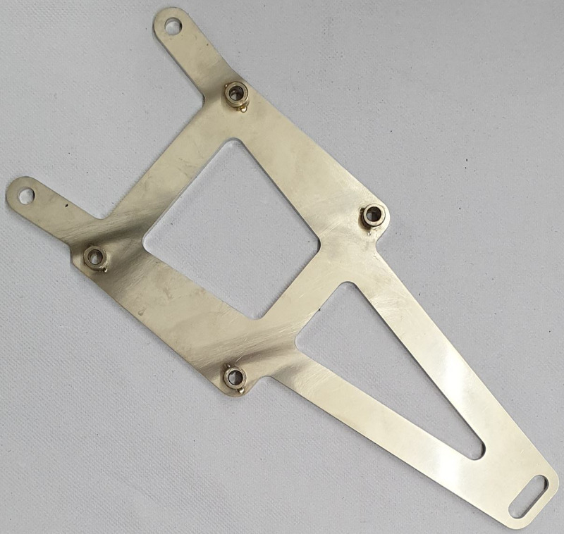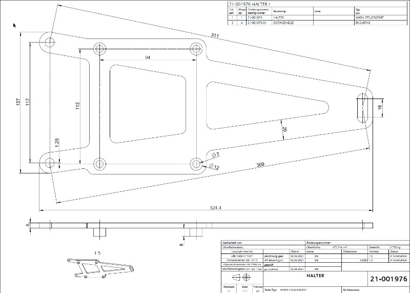 Entgegen der Aussage des Anbieters passt die Winde nicht mit montiertem Steuerkasten in die Stoßstange. Das mussten wir mitten im Umbau feststellen. Von Taubenreuther gibt's sog. Relocation Kits, aber die Werkstatt hat dann selbst Kabel mit passendem Querschitt und passender Länge gefertigt, um den Steuerkasten zu versetzen. Mit einem Stück Flachstahl wurde er oben vor dem Kühler montiert. Das habe ich später noch geändert, indem ich einen neuen Halter konstruiert habe, der drei vorhandene Befestigungspunkte verwendet. Er ist aus Edelstahl gelasert, und ich habe vier kurze Distanzbuchsen angeschweißt, um den Steuerkasten zu befestigen. Damit konnte ich den Kasten auch weiter aus dem Luftstrom zum Kühler heraus platzieren.