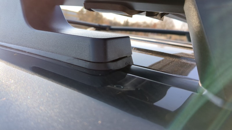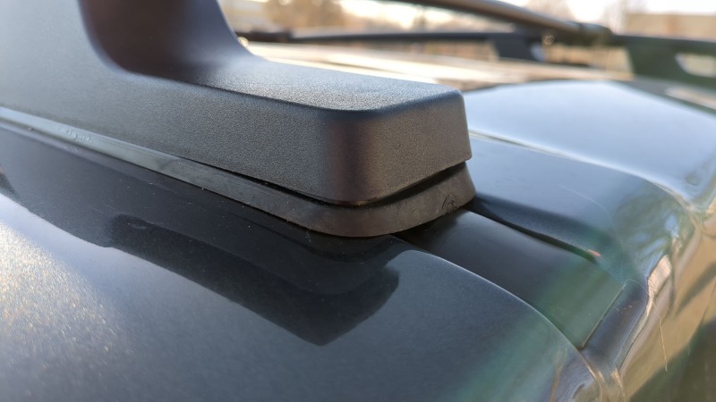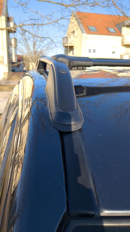 Achso: ich habe die Querträger vermutlich falsch herum angebaut (sieht man auf den Fotos nicht). Denn ab 90 km/h wird es echt laut auf dem Dach, ich vermute weil die dünne Seite in Fahrtrichtung zeigt und das dicke Ende Richtung Heck zeigt. Hinterher fiel mir ein, dass es bei meinem Jeep Thule-Trägern genau anders herum war. Muss ich noch umbauen und dann erneut schauen, ob es weiterhin so laut ist.