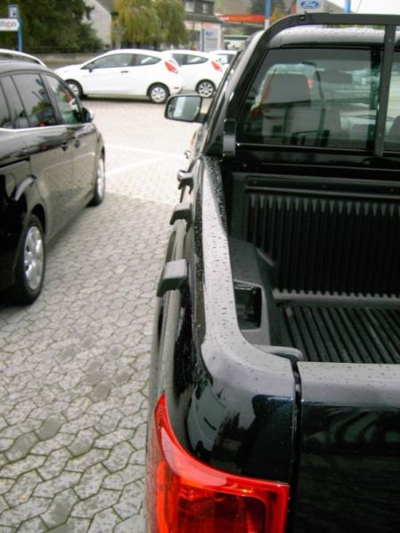 -Die Oberseiten der Ladeflächenwände und der Heckklappe bekommen eine Lackschutzfolie, ebenso alle Einstiege
